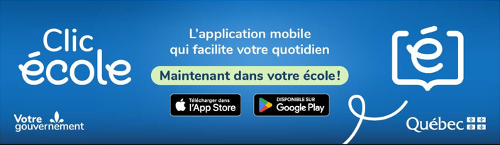 Depuis la rentrée scolaire 2025-2026, l’application mobile Clic école a remplacé l’application mParents / Mozaïk pour vos communications avec l’école. Cette application, conçue pour vous permettre de faire le suivi scolaire de votre enfant tout au long de l’année à partir de votre téléphone mobile, vous offrira un environnement sécuritaire et intuitif.